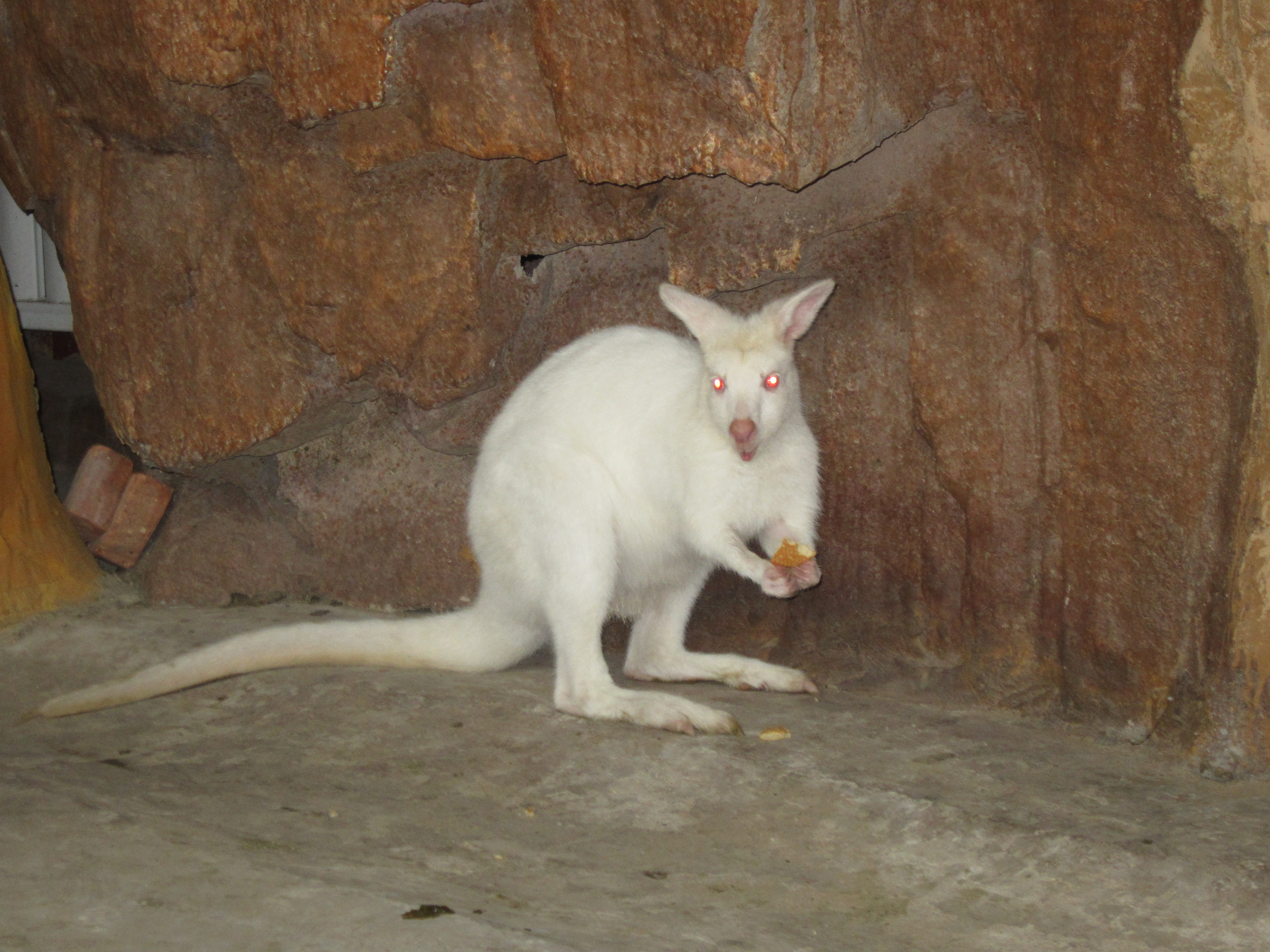 白袋鼠是赤袋鼠群體中基因突變的個別現(xiàn)象,與其他袋鼠相比,它們顯得特別嬌氣,容易得病,成活率低,因此十分珍貴。