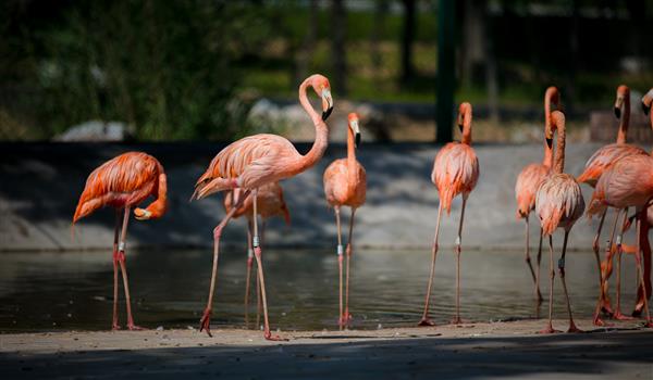 習性:火烈鳥棲息于人跡罕至的寬闊淺水域。常結成數(shù)幾萬至幾十萬只的大群一起生活,在淺灘用蘆葦、雜草、泥灰營造圓錐形巢穴。性機警、溫和,善游泳,但很少到深水域,飛行慢而平穩(wěn)。以水中甲殼類、軟體動物、魚、水生昆蟲等為食。
