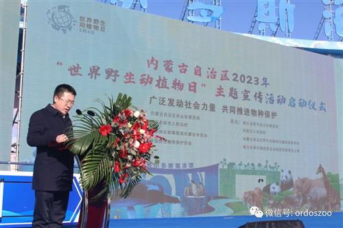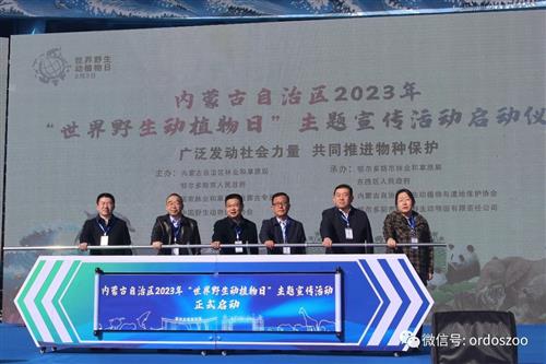 為進(jìn)一步推動(dòng)全民參與野生動(dòng)植物保護(hù),增強(qiáng)廣大群眾保護(hù)野生動(dòng)植物的意識(shí),建設(shè)美麗家園,內(nèi)蒙古自治區(qū)2023年“世界野生動(dòng)植物日”主題宣傳活動(dòng)啟動(dòng)儀式于3月3日由內(nèi)蒙古自治區(qū)林業(yè)和草原局、鄂爾多斯市人民政府、國(guó)家林業(yè)和草原局內(nèi)蒙古專員辦、中國(guó)野生動(dòng)物保護(hù)協(xié)會(huì)聯(lián)合主辦,由鄂爾多斯市林業(yè)和草原局、東勝區(qū)人民政府、內(nèi)蒙古自治區(qū)野生動(dòng)植物與濕地保護(hù)協(xié)會(huì)、鄂爾多斯市隆勝野生動(dòng)物園有限責(zé)任公司承辦,在鄂爾多斯野生動(dòng)物園舉行。