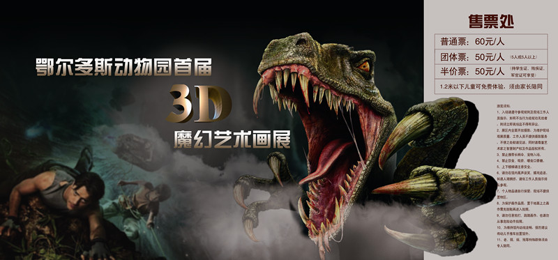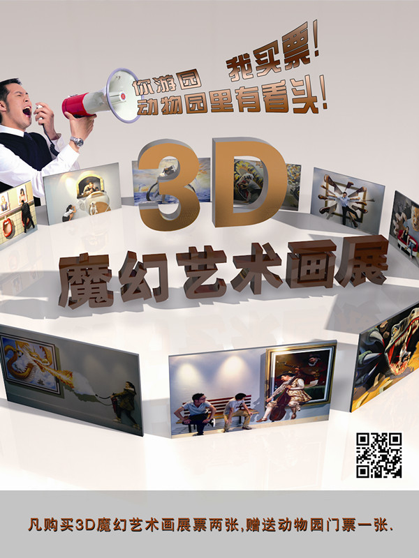 3D畫展是一種新穎的互動性展覽,不僅可以看,還可以玩。進入展區(qū),出現(xiàn)真人和畫面融為一體的奇特效果,這是一個老少皆宜的展覽,讓您真正體驗到 “拉”大象鼻子、與長頸鹿“親吻”,拿起魚竿釣兇猛的鱷魚,與偉人“握手”,與外星人 “交手”,牽著恐龍走,臥坐鯊魚嘴等等現(xiàn)實生活很難實現(xiàn)的猶如真實感受。3D魔幻藝術(shù)最大優(yōu)點在于面向大眾,追求最富有樂趣的互動性,可以說是最有親和力的一種藝術(shù)展覽形式。無論是智力開發(fā)期的兒童、還是熱戀中情侶,亦或是家庭,都有不得不來的理由。只要半小時就可以玩到high!現(xiàn)在體驗,還可以享受“體驗3D畫展送動物園門票”的優(yōu)惠活動。所以,不管你是從哪里來的朋友,只要來一次深刻的3D魔幻體驗,你就變成這里的主人。趕快行動吧,不要忘了帶著您身邊的朋友。