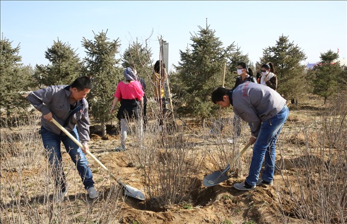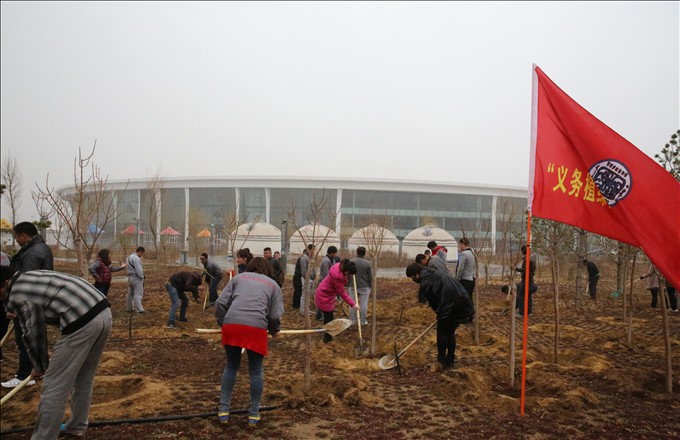 2013年4月是鄂爾多斯動物園開展以“義務(wù)植綠護綠,愛我家園”為主題的全園種樹活動月,園區(qū)共有234人參與了本次活動,共平整土地面積23000㎡,共挖樹坑1594個,補植喬、灌木1700余株,澆水、施肥、修剪20284余株,攏水圈14000余個,清理雜草、枯枝、落葉、垃圾涉及區(qū)域面積95800㎡,共清運草、玉米秸桿36000斤,共對15000㎡左右景觀喬木、灌木進行了松土。