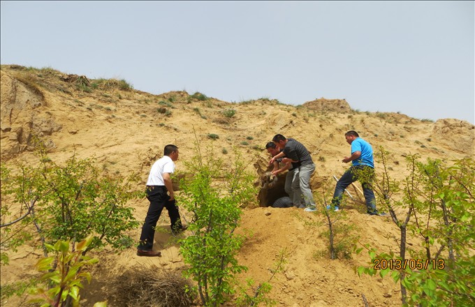 2013年5月13日,是蒼狼在鄂爾多斯動物園安家落戶后繁殖的第一窩小狼崽,為他保證小狼崽的存活率,飼養(yǎng)員們小心謹慎的把它們從小山洞里抱出來!