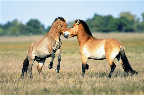 習(xí)性:野馬性機(jī)警,善奔馳;一般由強(qiáng)壯的雄馬為首領(lǐng)結(jié)成5-20只馬群,營(yíng)游移生活。多在晨昏沿固定的路線到泉、溪邊飲水。三五只或十余只成群游蕩。群體中的個(gè)體之間在進(jìn)食之后?;ハ嗲謇砥つw。休息和睡眠有站立、腹臥和側(cè)臥等3種姿勢(shì),但警惕性很高,稍有動(dòng)靜便處于應(yīng)激狀態(tài)。感覺(jué)靈敏,警惕性高,奔跑能力強(qiáng),晝夜活動(dòng),但以夜晚為多。